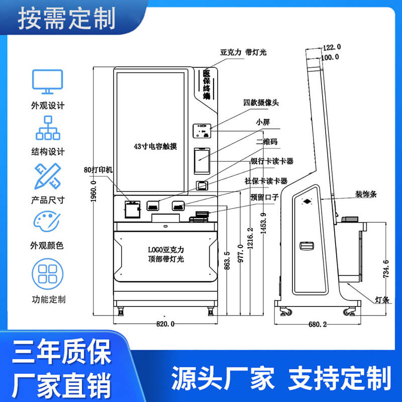 43 寸醫(yī)保自助終端機(jī)設(shè)備組件、功能簡介及工業(yè)產(chǎn)品外觀結(jié)構(gòu)功能定制服務(wù)